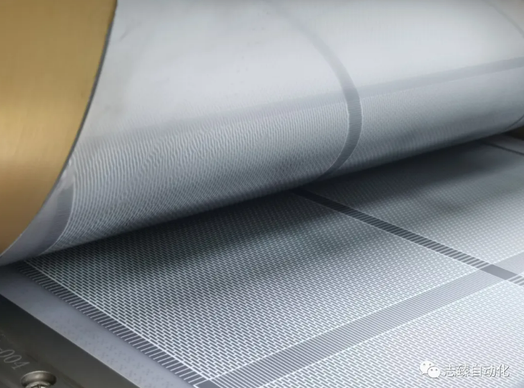 而辊轴式叠层则是线与面的展开贴合,同样初中物理课一条线由2个点决定,在贴合过程中会形成两条不规则曲线在平面上展开,通过特殊的结构设计可以将直线打断成上万个小段线,想象一下画面上万条曲线在平面上展开,对比平板的3点接触压合,辊轴就是无群个点接触压合,再加上贴手机膜的工艺,辊压过程中将气泡排出,辊轴式的叠层质量会大大好于平板式;介质膜的剥离采用无损伤滚轮剥离对比平板式的锐角撕裂剥离,在剥离的品质和稳定性上会有很大程度的改善,特别是超低厚度介质膜的剥离优势尤为明显;产品在叠合过程中始终是线性接触,压合力可以做到足够大,对比平板式压合数据单位面积内可以做到几百吨甚至更大的力,叠层后的产品硬度对比平板式加工会很大程度的提高;辊叠因线性压合不需要保压的过程,每层的ct可以做到2秒以内速度,对比平板式在效率上有绝对优势。